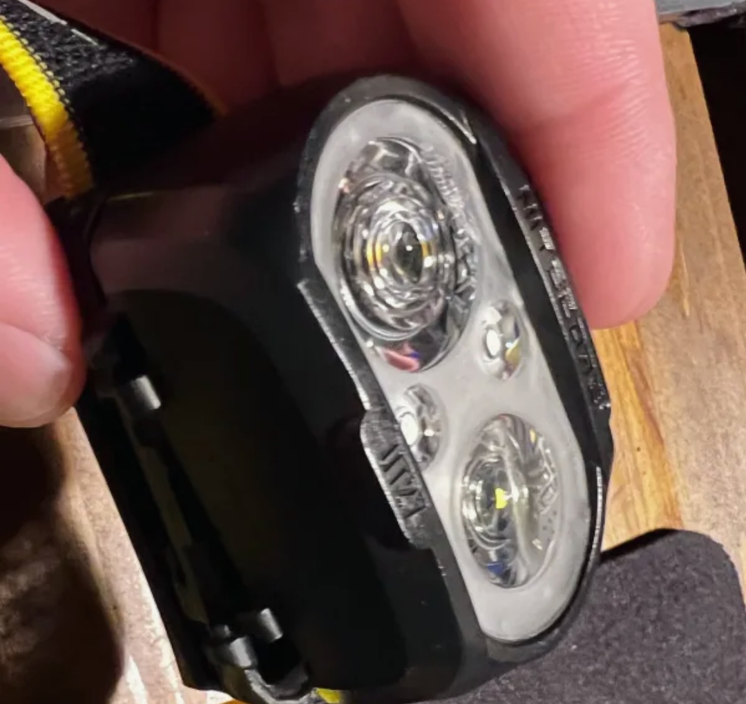 Ремешок фонарика прорезиненный изнутри, на голове не скользит.